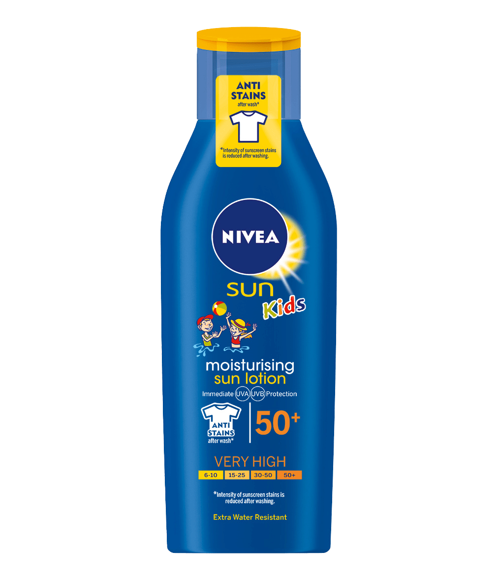 NIVEA SUN Kids Moisturising Sun Lotion has a caring, extra water-resistant formula with reliable UVA/UVB protection especially for children's delicate skin.